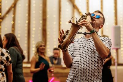 Dom was fantastic. We loved him. The guests loved / Hayley Wilson, Milling Barn, BuntingfordTo say this was an absolute game changer at my wedding is an understatement! Dom was super nice and full of energy, he really got the crowd going. I want to get married all over again just so I can dance to the sax!